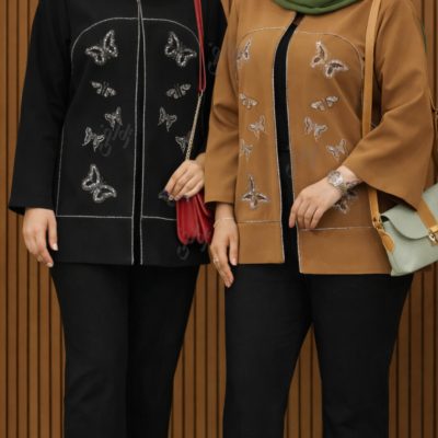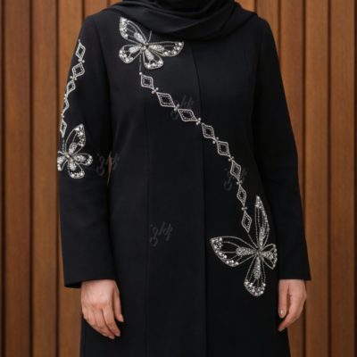 پنل نگین حرارتی مانتویی ست پروانه اطلسی نقره